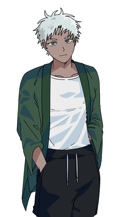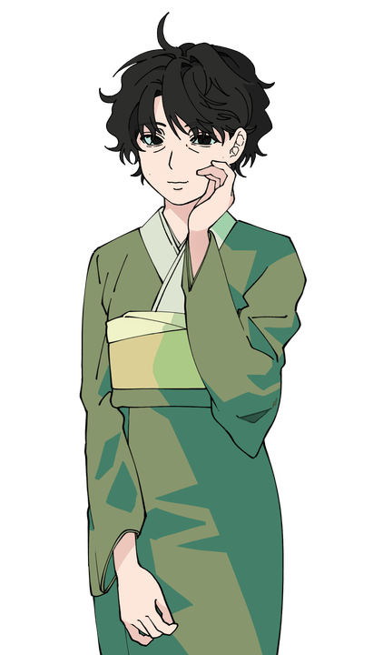 옆을 보면 목도리에 코를 파묻고 양손을 모은 채 눈을 감은 이자나기를 볼 수 있다.